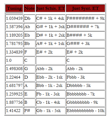 Just (C-Major mode) Schismatic and Syntonic Equal Temperaments